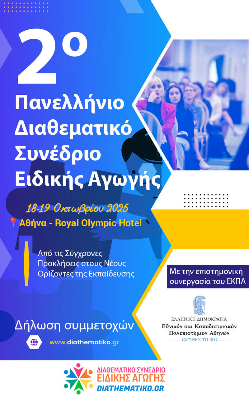 Κεντρικός θεματικός άξονας: «Διαθεματικό Συνέδριο Ειδικής Αγωγής: Από τις Σύγχρονες Προκλήσεις στους Νέους Ορίζοντες της Εκπαίδευσης»